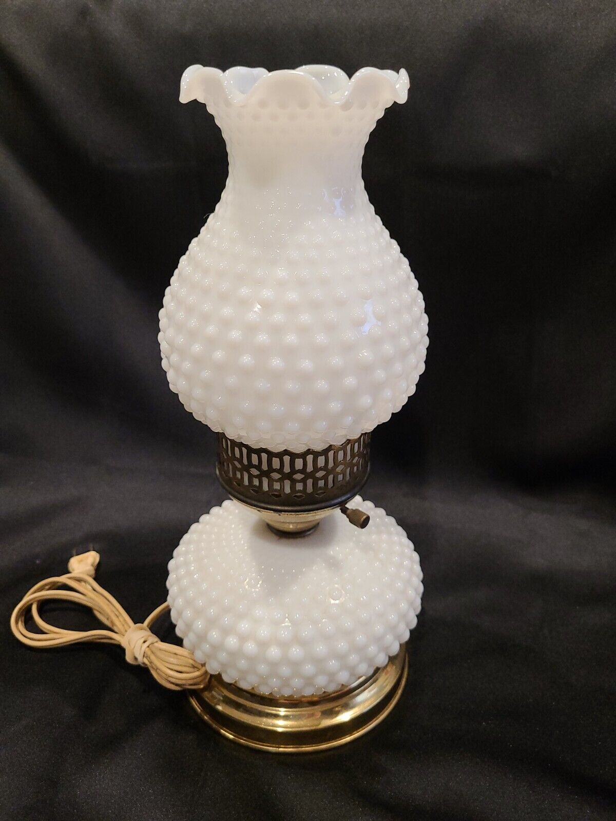white hobnail milk glass lamp