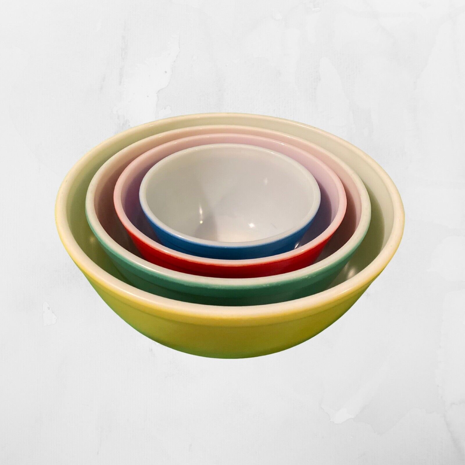 Rare Vintage PYREX Primary Colors Set of 4 Mixing Nesting Bowls 401 402 403 404