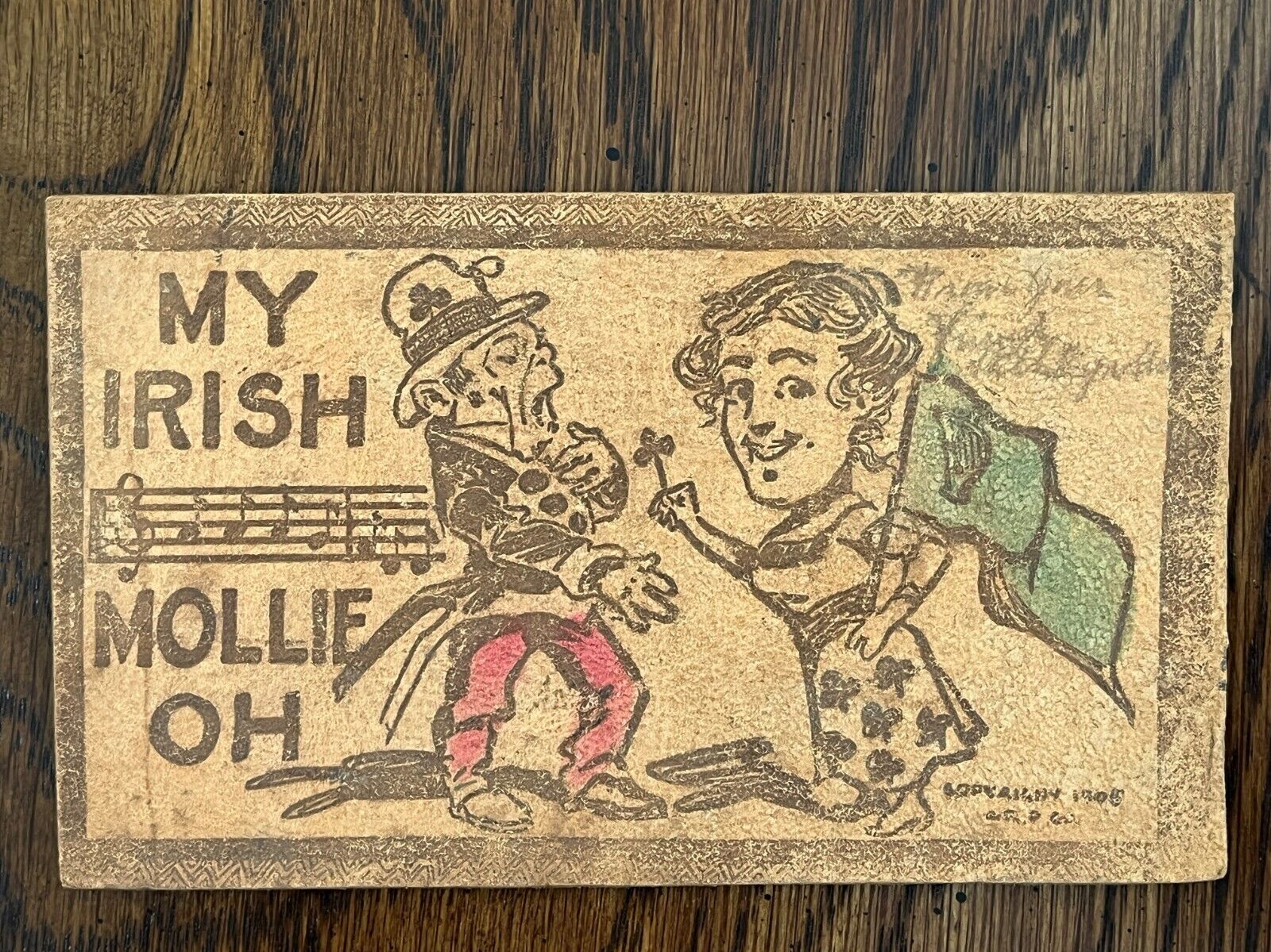 Title (ebay affiliate link): ANTIQUE LEATHER POSTCARD MY IRISH MOLLIE OH POSTMARKED AUG. 25 1906
