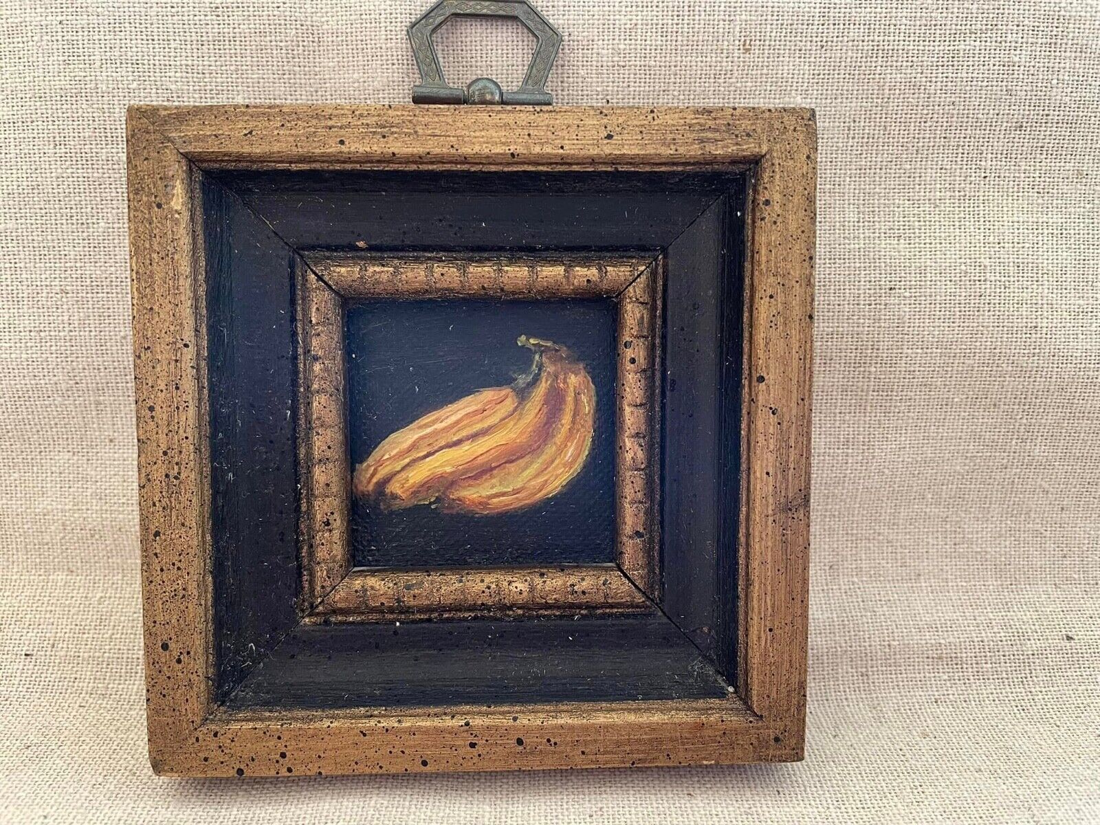 Antique 3 5/834 Miniature Framed Oil Painting BANANAS Fruit Art