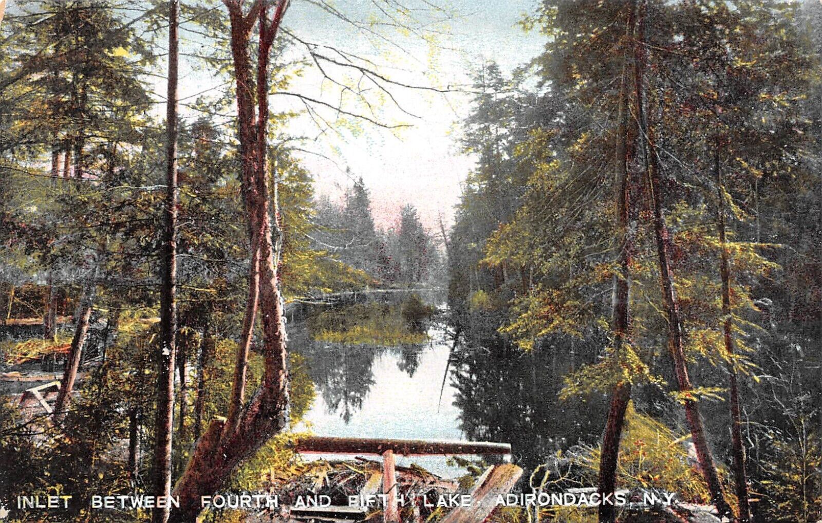 C8480 Inlet between Fourth and Fifth Lake Adirondacks NY Antique Postcard