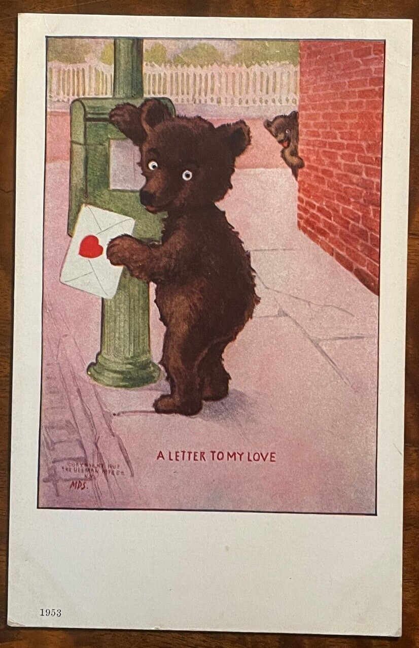 Valentine Bear Postcard A Letter To My Love. c1907 Ullman
