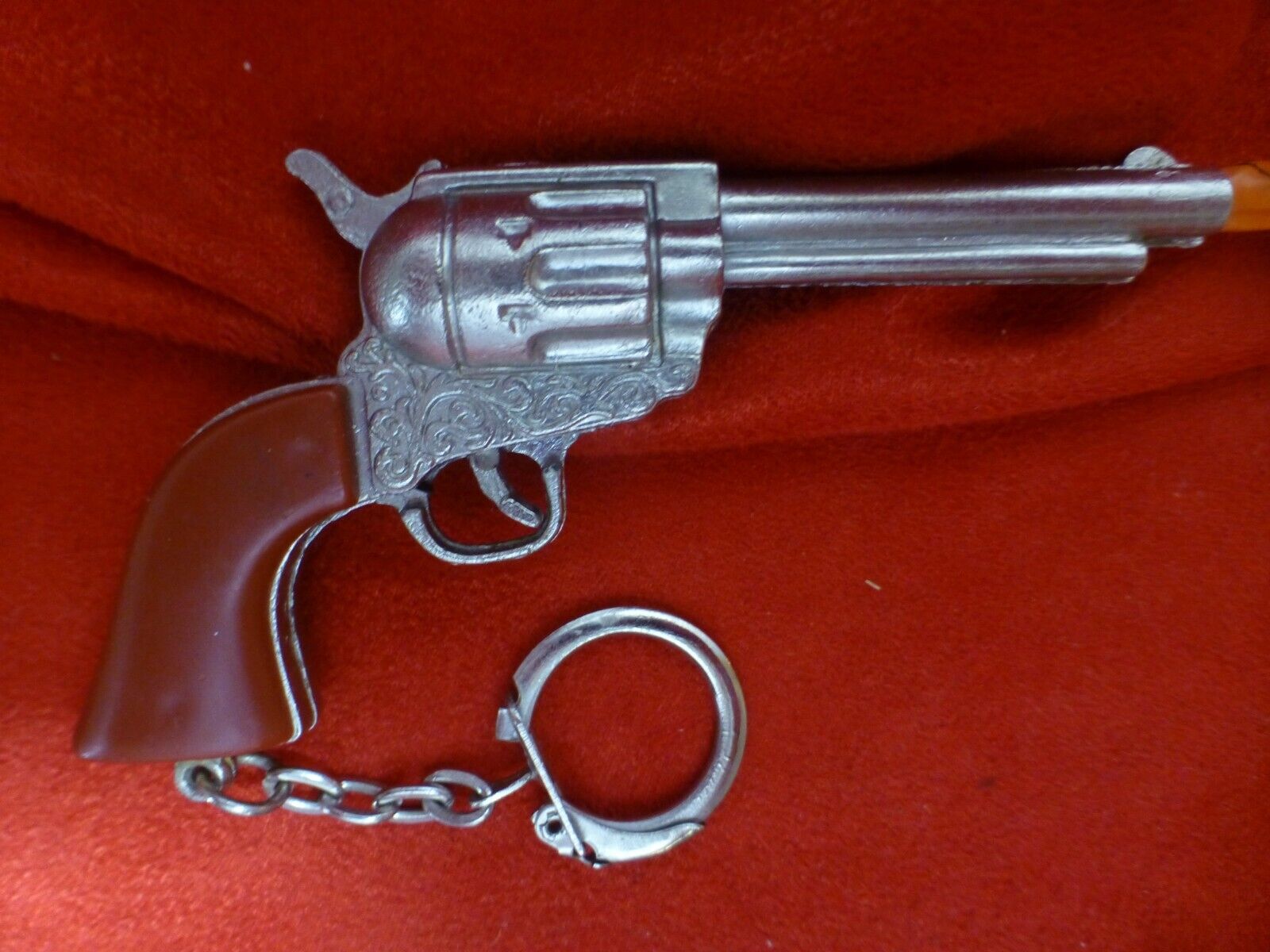 SCARCE. VINTAGE 34OLD WEST COWBOY 6SHOT34 KEY CHAIN CAP GUN CLOSED END METAL