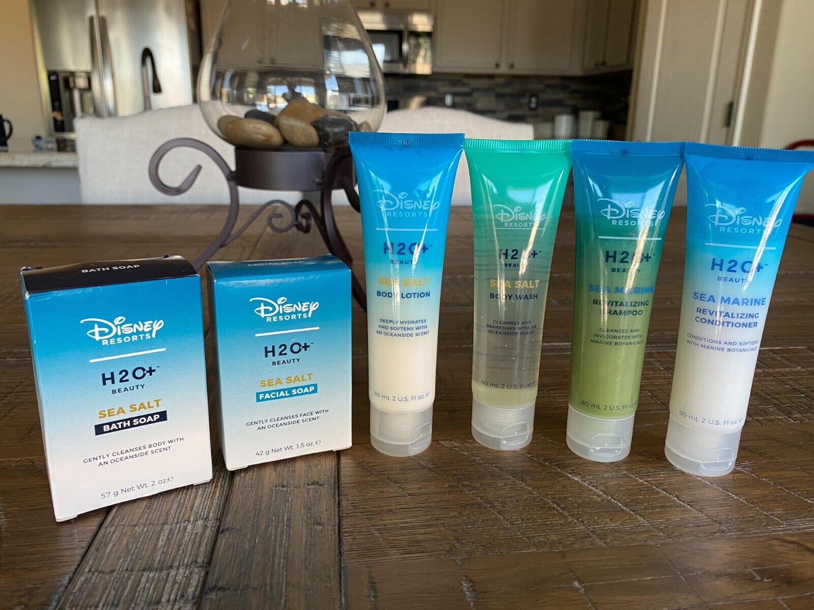 Title (ebay affiliate link): Disney Resorts 6pc H2OSea Salt/Marine ShampooConditionerSoapBody Washlotion