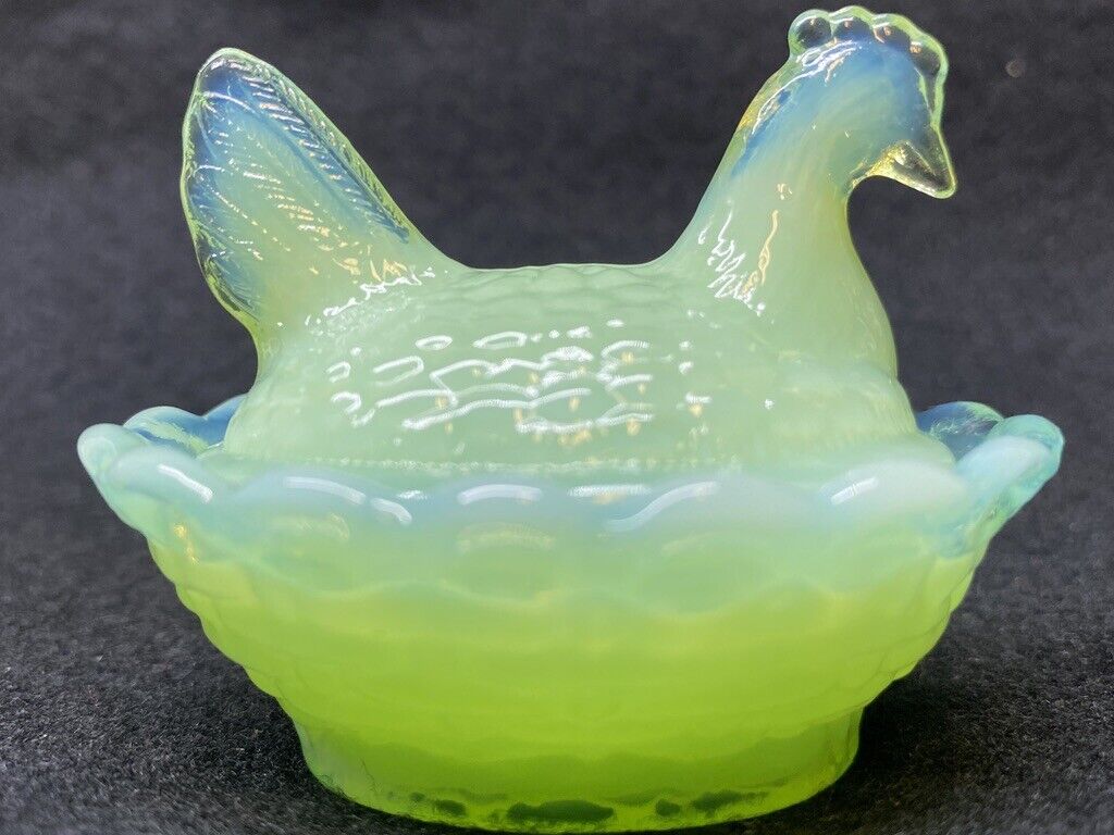 Title (ebay affiliate link): Jadeite Green milk glass Hen Chicken on nest basket egg chick salt rooster peep
