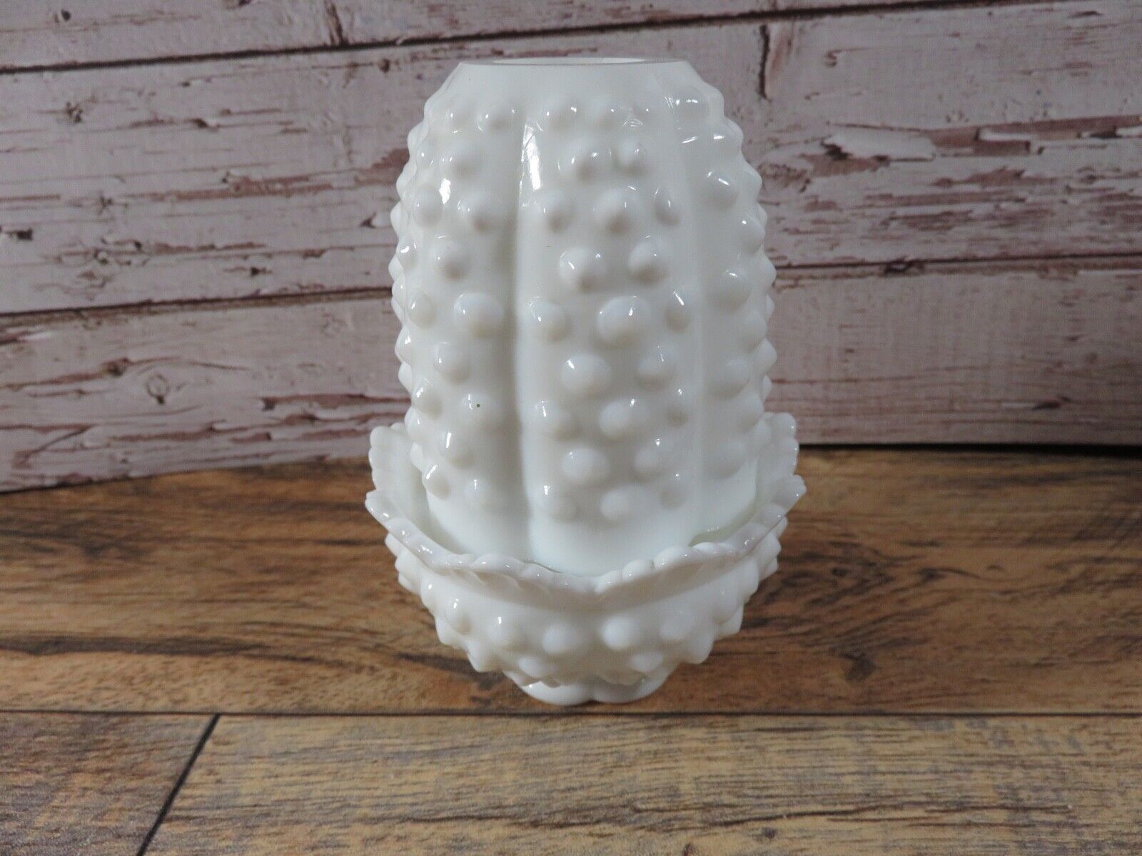 Fenton White Hobnail Milk Glass 2 Piece Fairy Lamp Candle Holder Unmarked Vtg
