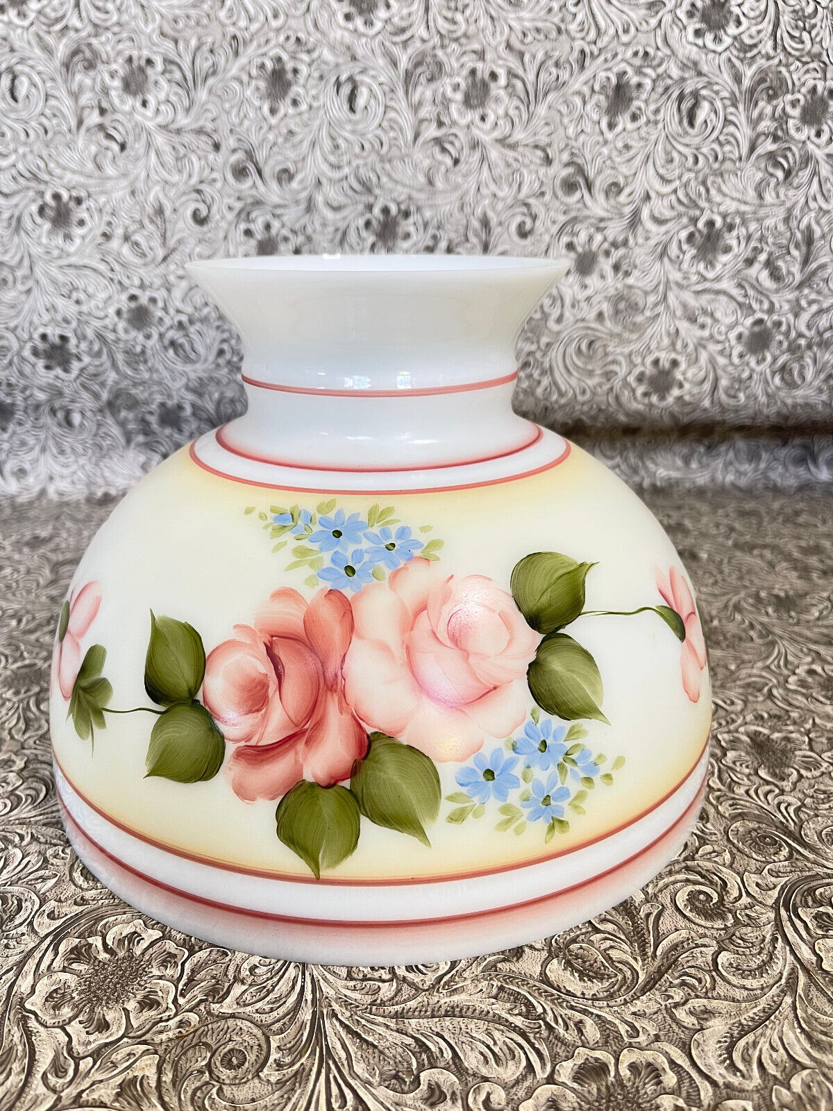 Fenton Glass Oil Lamp Shade Student GWTW Light Victorian 9 3/434 Fitter SIGNED