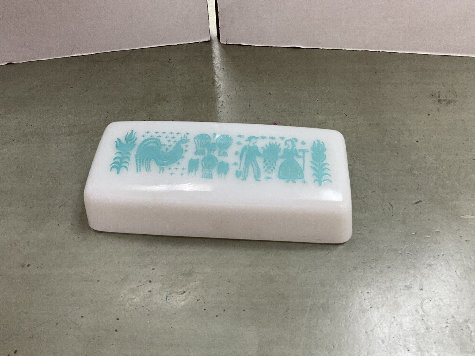VINTAGE PYREX BUTTER DISH LID ONLY AMISH BUTTER PRINT TURQUOISE/WHITE