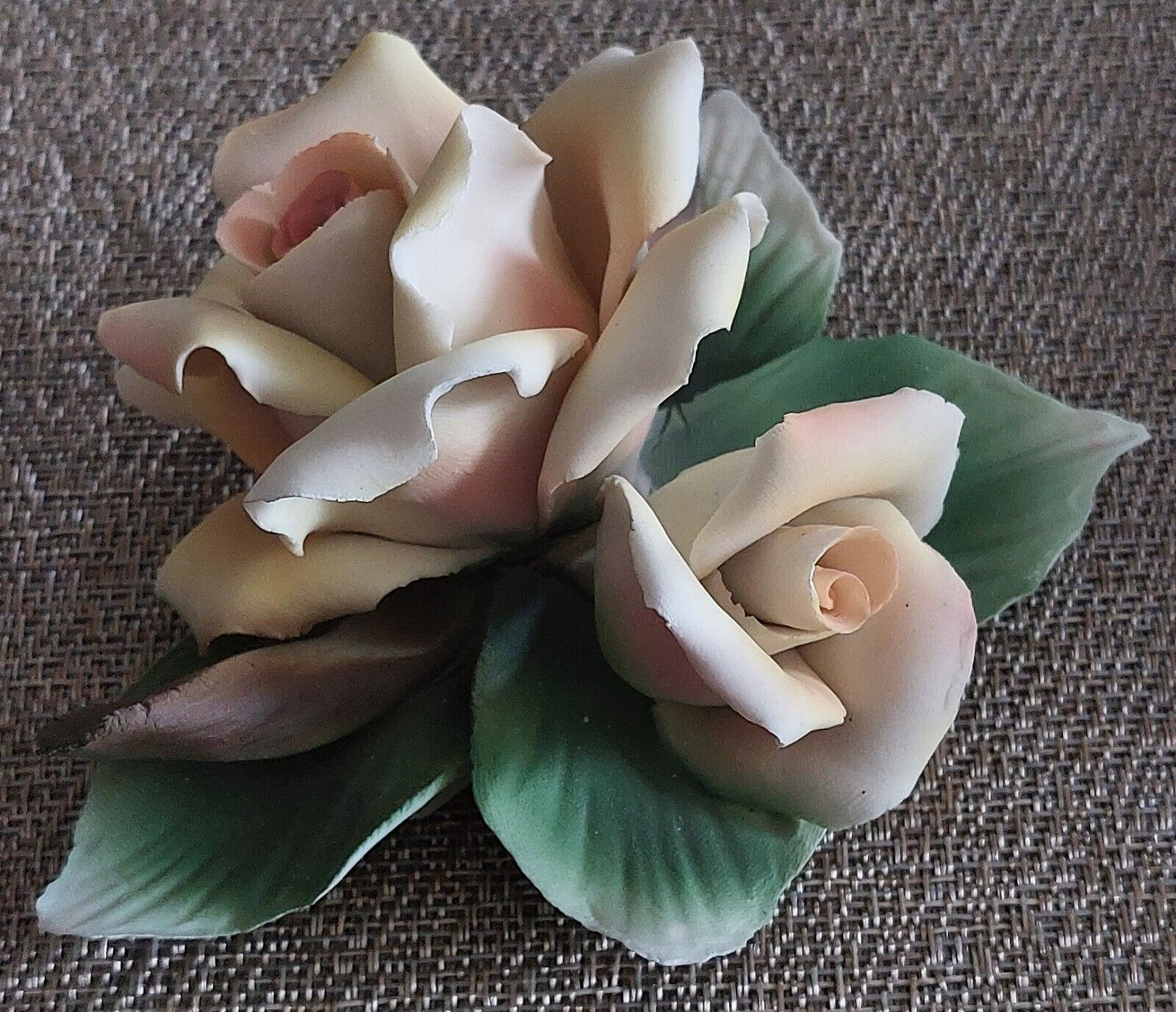 VINTAGE CAPODIMONTE PORCELAIN YELLOW TO PINK 2 ROSES FIGURINE