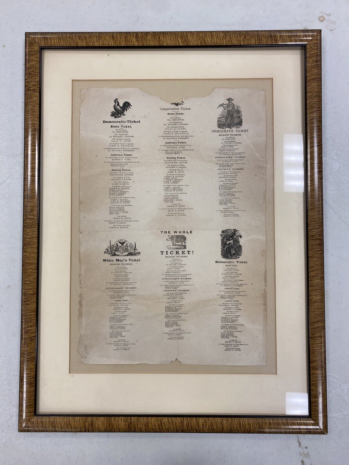 Antique Paper Ballot Maryland State Voting Ticket 1867 Framed