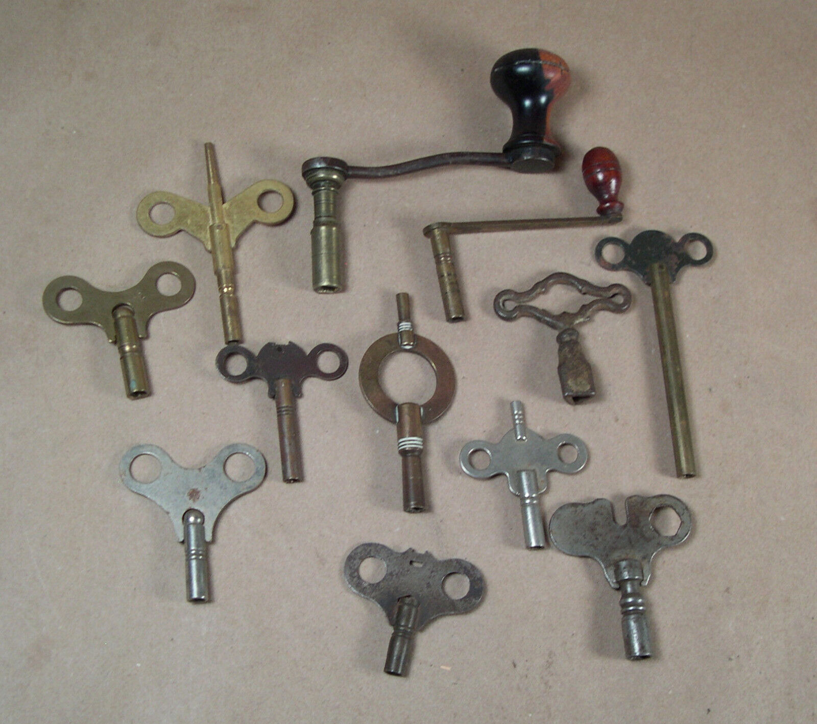 Lot of 12 Assorted Style Old CLOCK KEYS