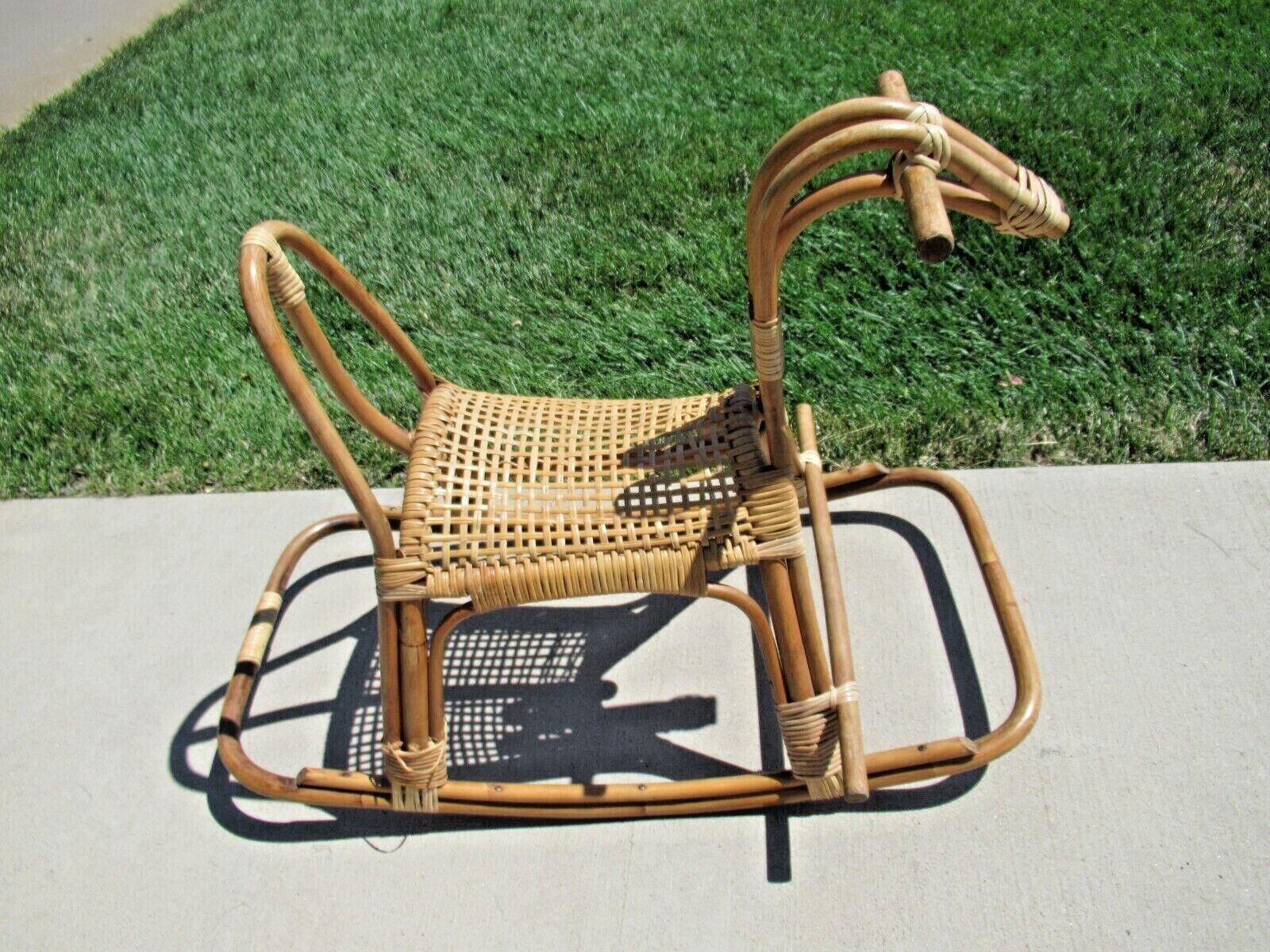 Title (ebay affiliate link): Vintage Franco Albini Bamboo Wicker Rattan Wood Rocking Horse Mid Century