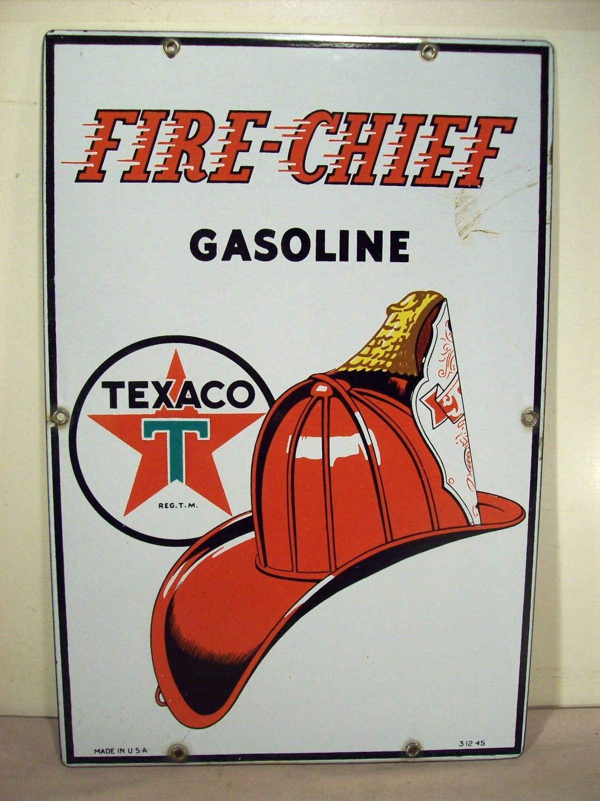 Title (ebay affiliate link): 1945TEXACOFIRE CHIEF GASOLINEORIG. PORCELAIN GAS PUMP ADVERTISING SIGN18x12