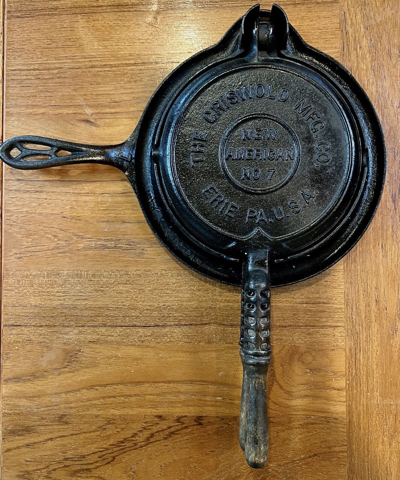 Title (ebay affiliate link): Vintage Griswold New American No. 7 Pat. 1908 Waffle Cast Iron