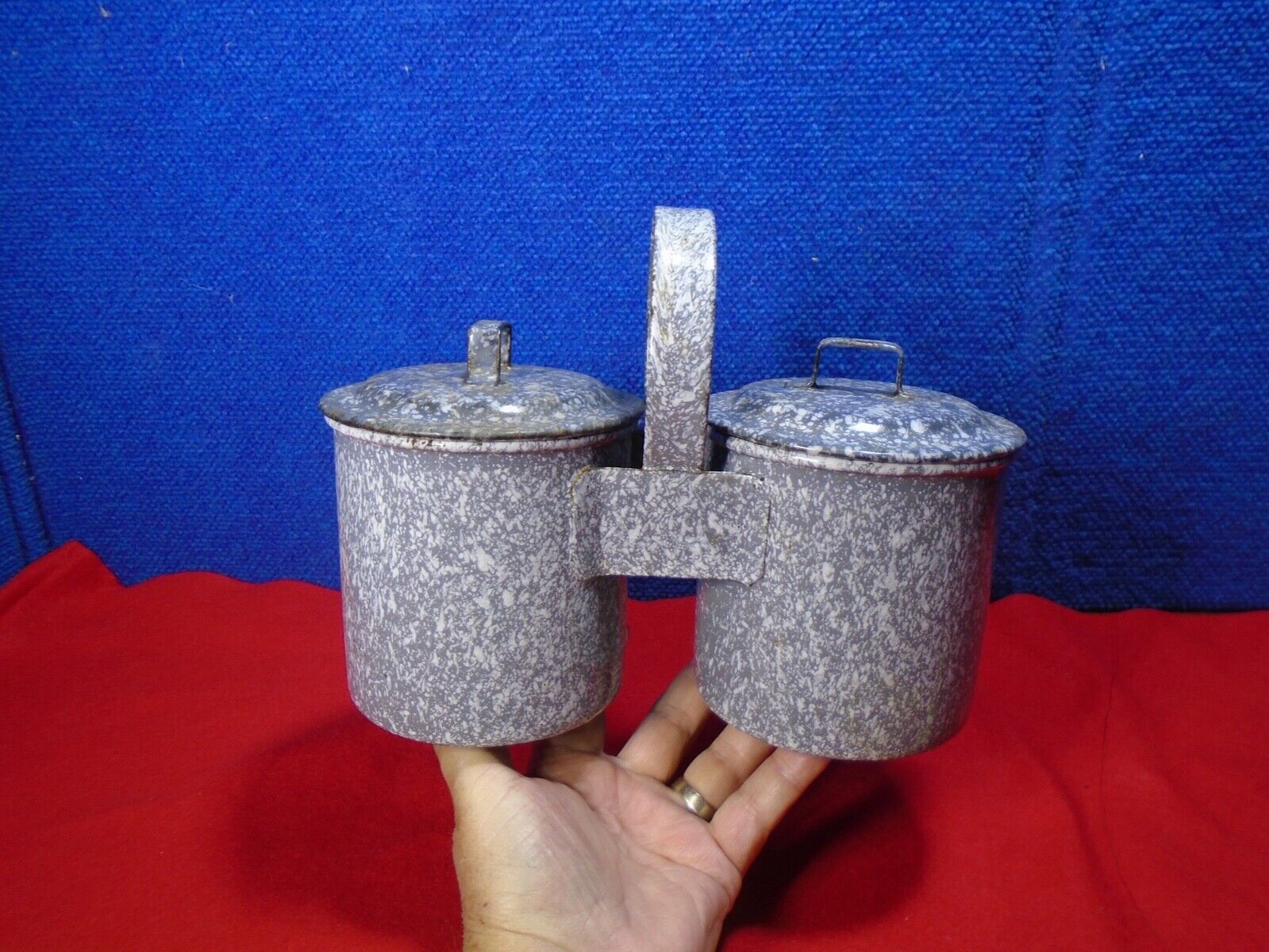 Antique Gray Graniteware Double Handled Pail w/ Lid