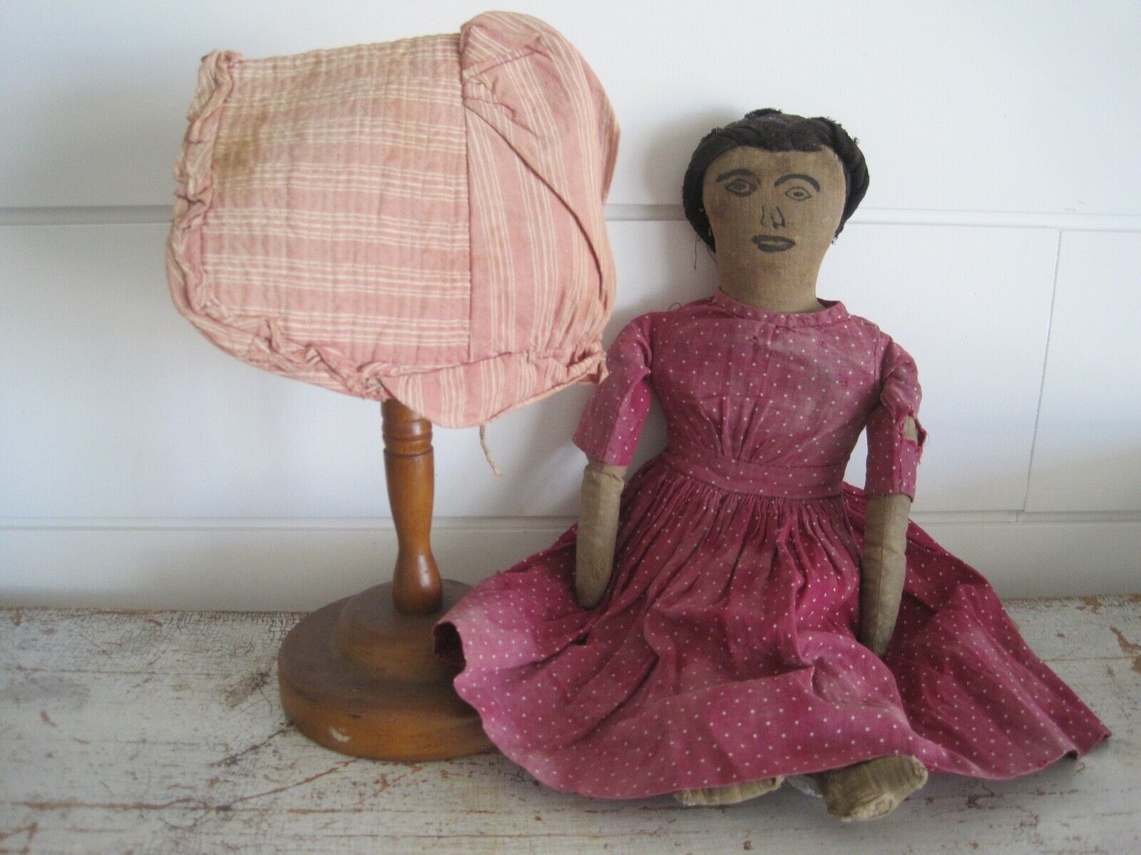 Title (ebay affiliate link): Old Primitive Red and White Fabric Baby Bonnet with Inside Ties American AAFA