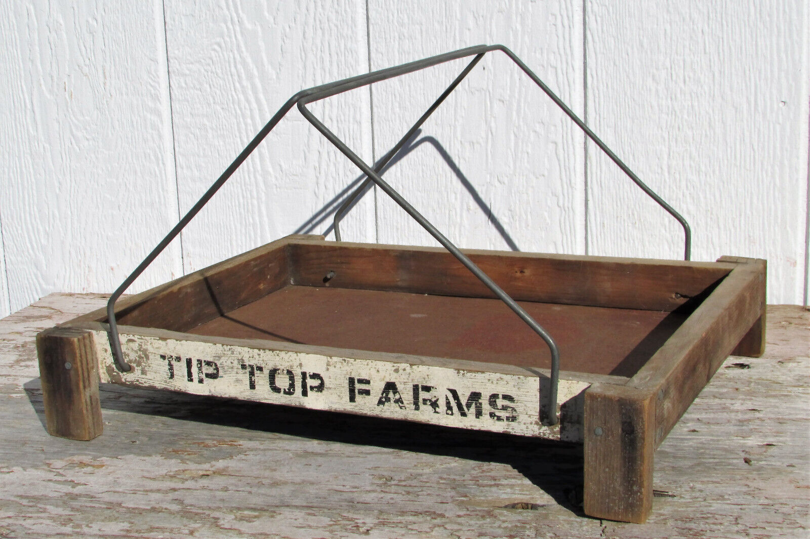 PRIMITIVE WOODEN BERRY TOTE TIP TOP FARMS VINTAGE PRODUCE FRUIT STAND STRAWBERRY