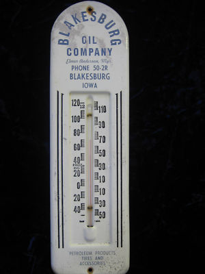 Vtg Blakesburg Iowa Oil Co Tin Advertising Theremometer