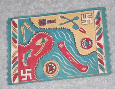 1910 TOBACCO FELT INDIAN RUG GOOD LUCK SWASTICAS # 9