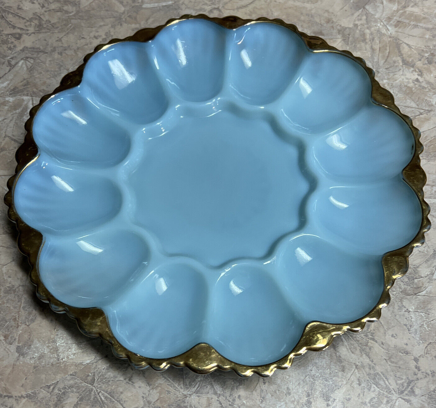 Vintage Anchor Hocking Fire King Delphite Blue Milk Glass Deviled Egg Plate