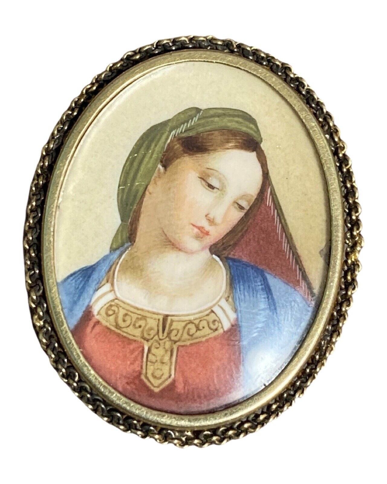 Vintage 800 SILVER Miniature MARY Lady PORTRAIT PAINTING Old NECKLACE PENDANT