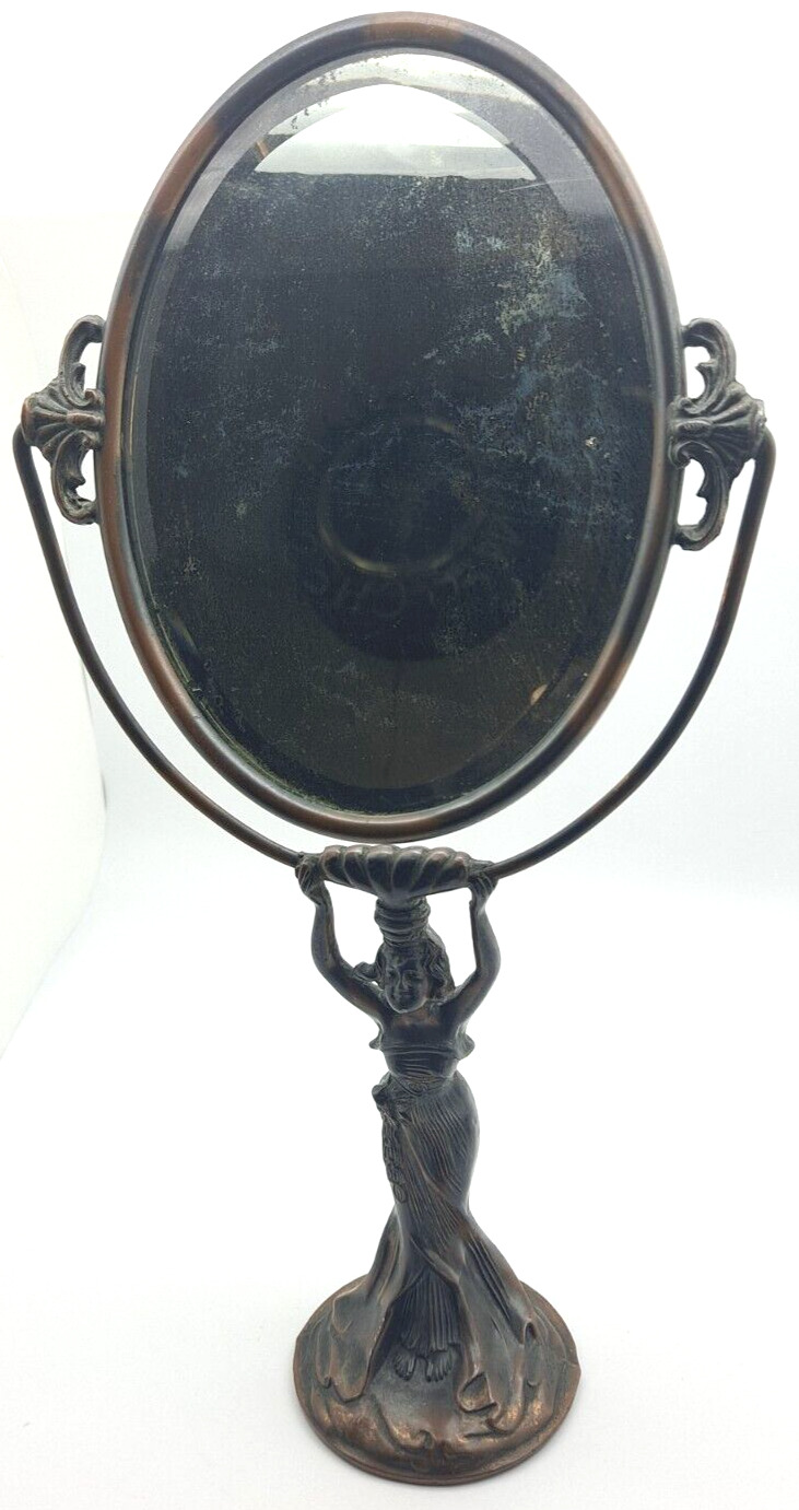 Title (ebay affiliate link): Antique Dresser/Vanity Mirror Woman In Dress Design Hinged Art Nouveau
