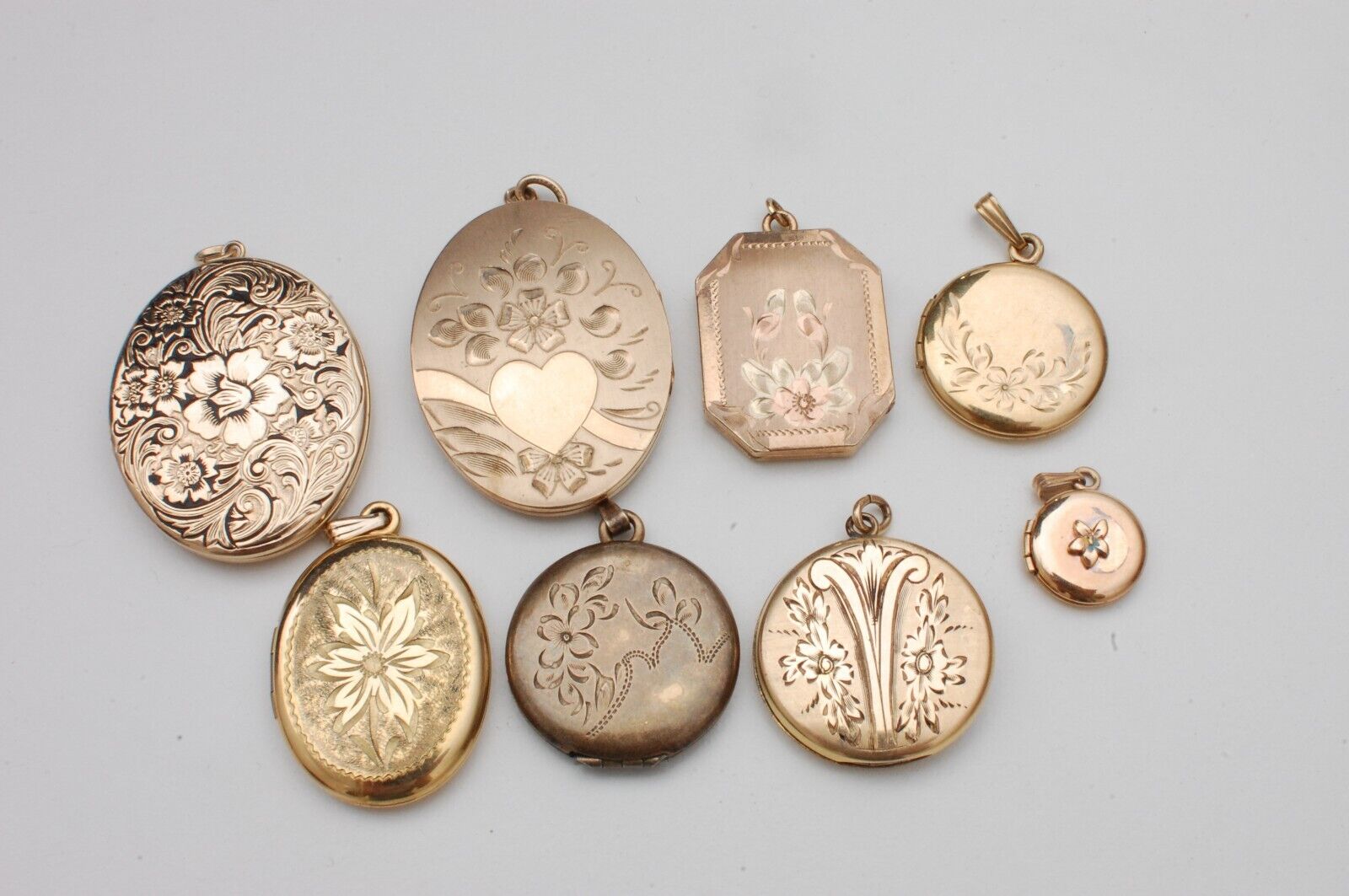 Title (ebay affiliate link): 8 Antique Vintage Rare Gold Fill Jewelry Necklace Pendant Puffy Flat Lockets