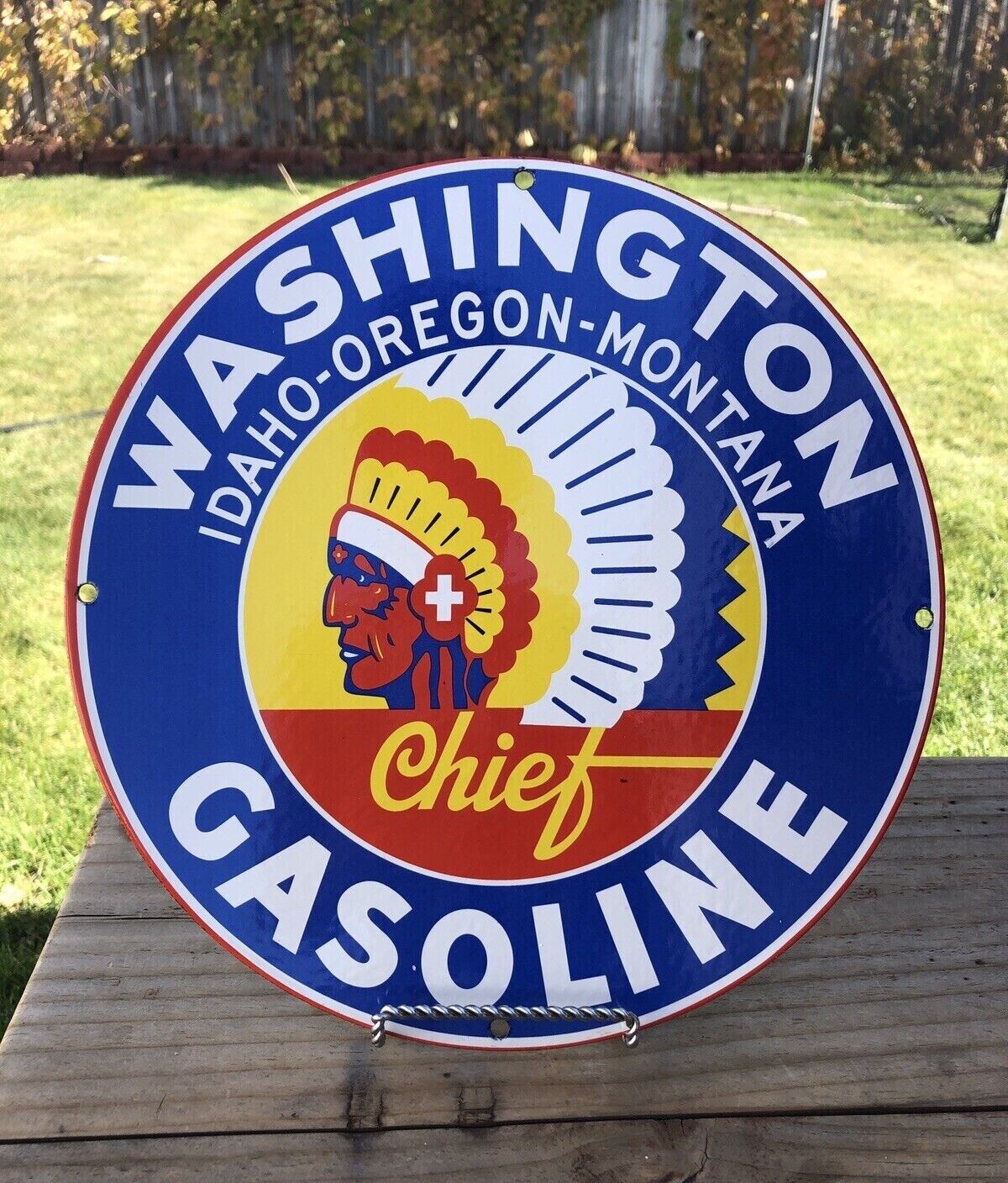 Title (ebay affiliate link): VINTAGE WASHINGTON CHIEF GASOLINE PORCELAIN MOTOR OIL SERVICE STATION GAS SIGN