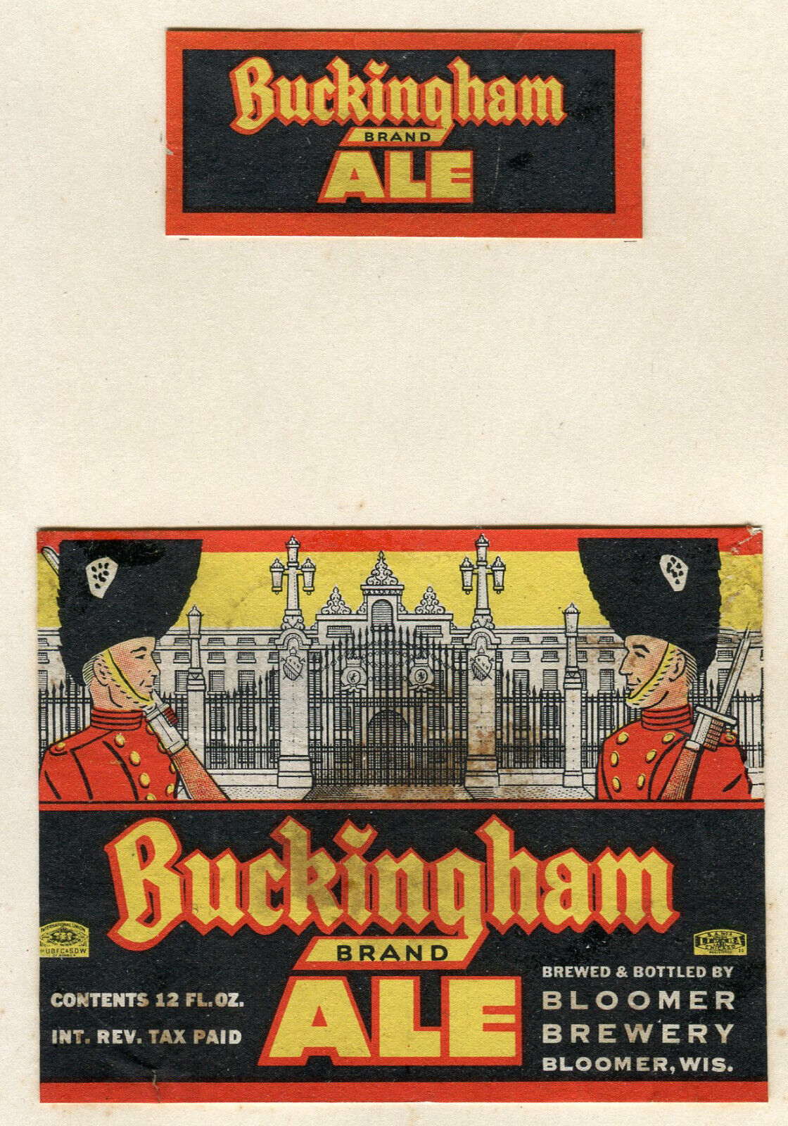 Old Buckingham Ale Beer Label Neck Bloomer Brewery Wisconsin WI IRTP 12 oz