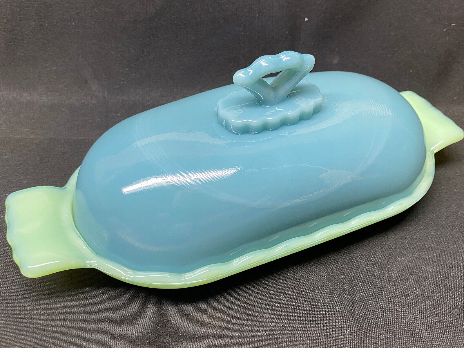 Jadeite Green Blue milk glass covered stick butter dish cheese dome opaque pound