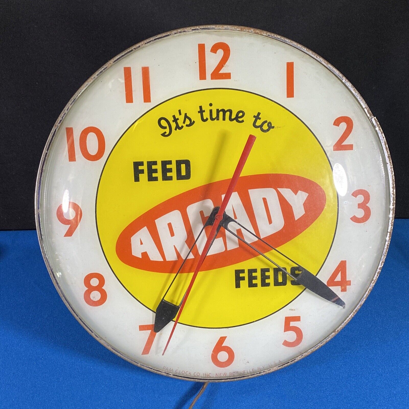 Vintage Arcady Feeds Lighted Clock Advertising Sign WORKING Farm Agriculture