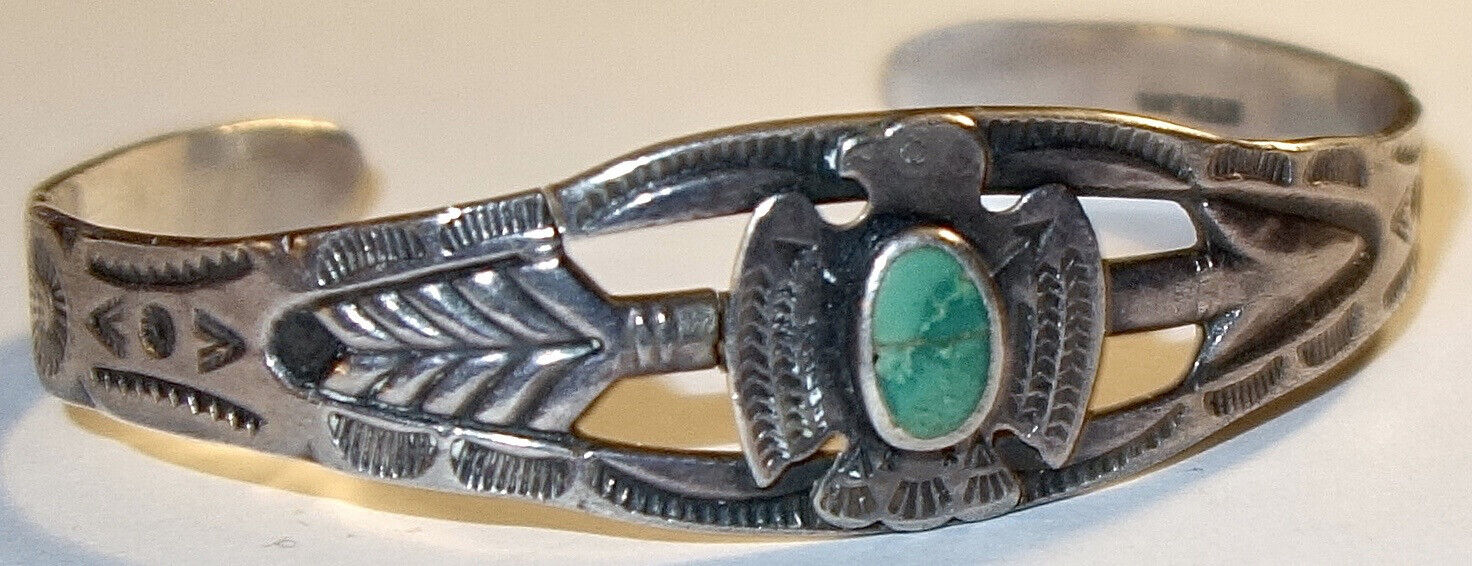 Title (ebay affiliate link): ANTIQUE Native American STERLING Handmade TURQUOISE THUNDERBIRD Cuff BRACELET