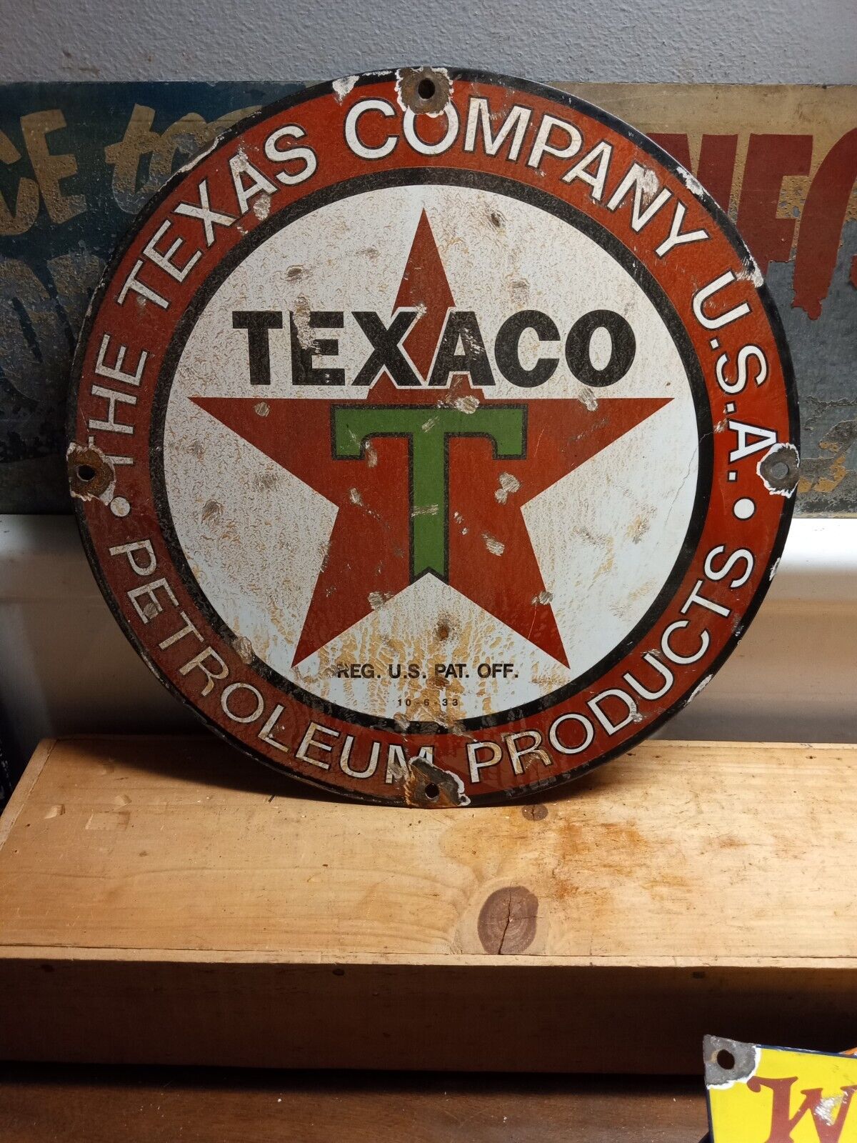 Title (ebay affiliate link): 1234 TEXACO The Texas Company Oil Gas Pump Plate Porcelain Metal Sign
