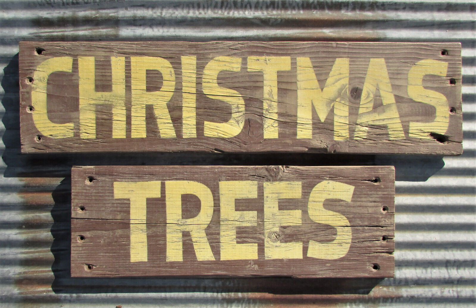 Vintage CHRISTMAS TREES WOODEN SIGN ROAD SIDE STAND PAINTED ADVERTISING tree old