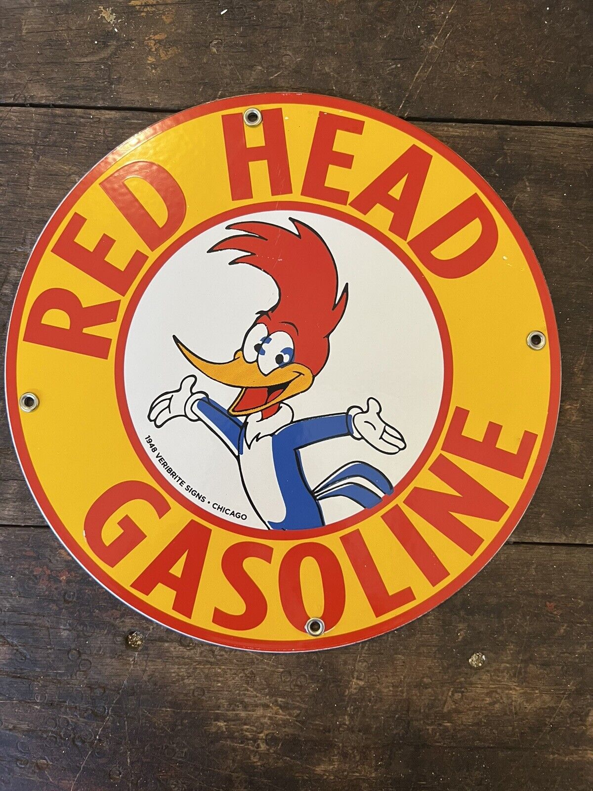 RED HEAD GASOLINE VINTAGE PORCELAIN GAS OIL SIGN