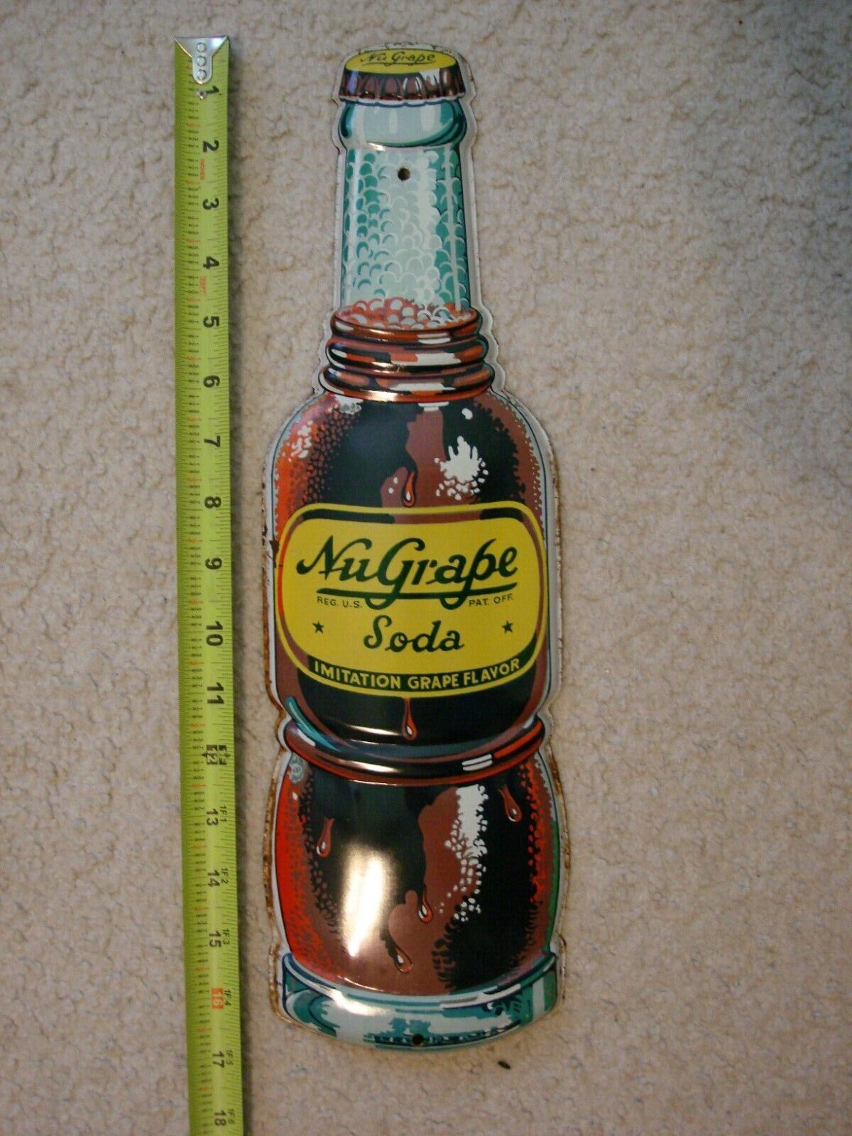 1930S 40s ORIGINAL NUGRAPE BOTTLE EMBOSSED SIGN RARE NICE