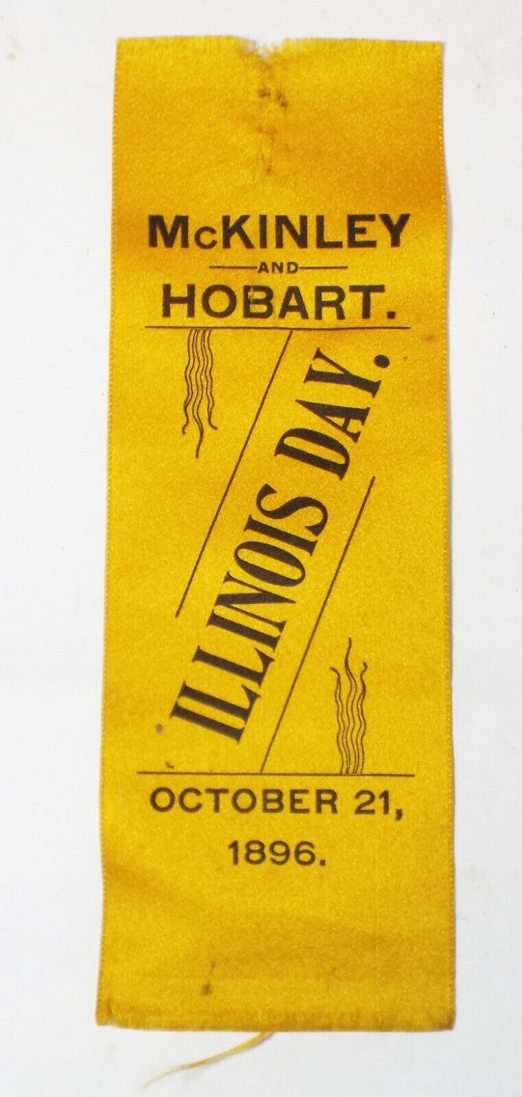 RARE Antique MCKINLEY HOBART Illinois Day October 21 1896 POLITICAL RIBBON