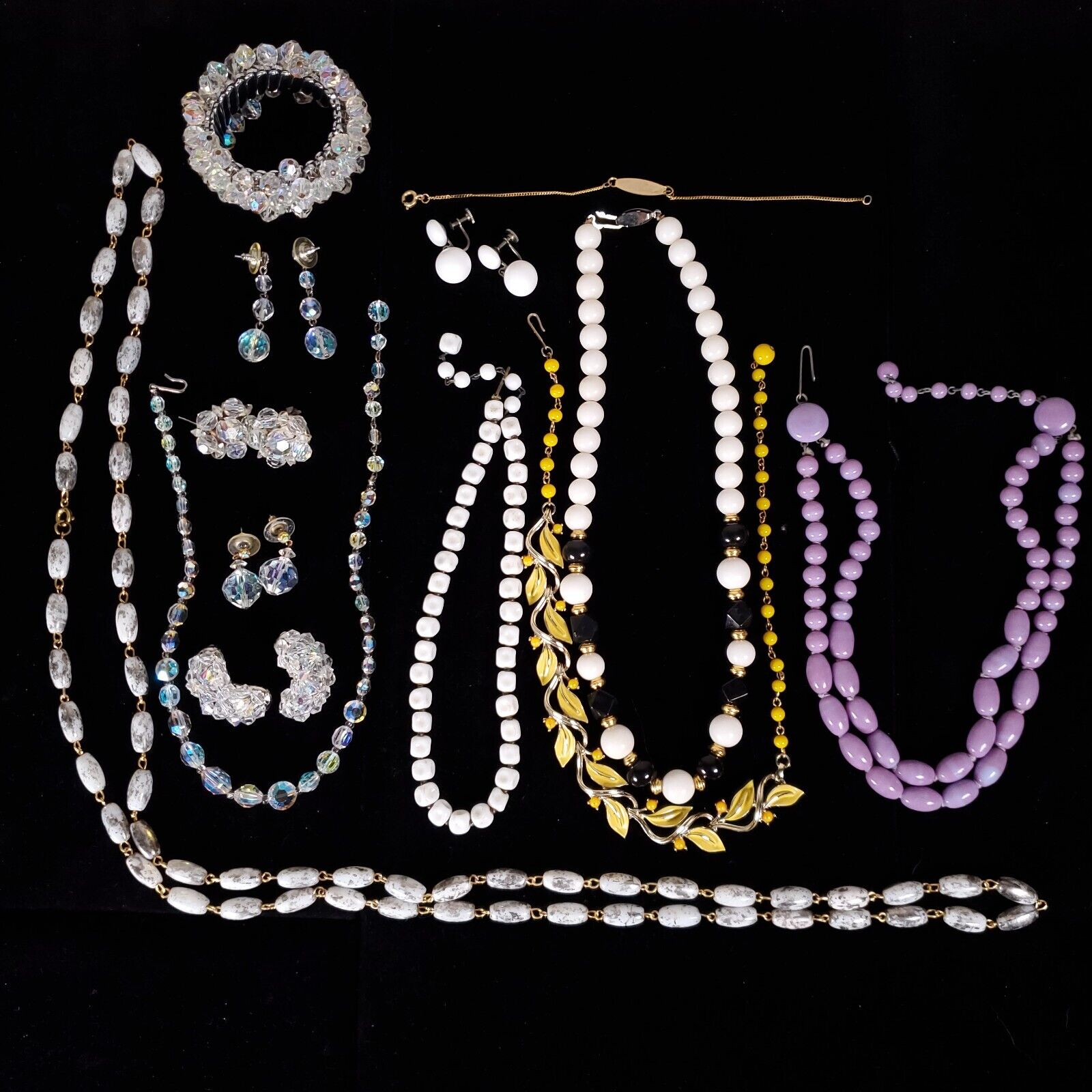 Title (ebay affiliate link): Vintage jewelry lot Lisner Japan milk glass Aurora borealis some signed 13 pc