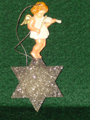 OLD Christmas ornament - plastic angel atop mica star