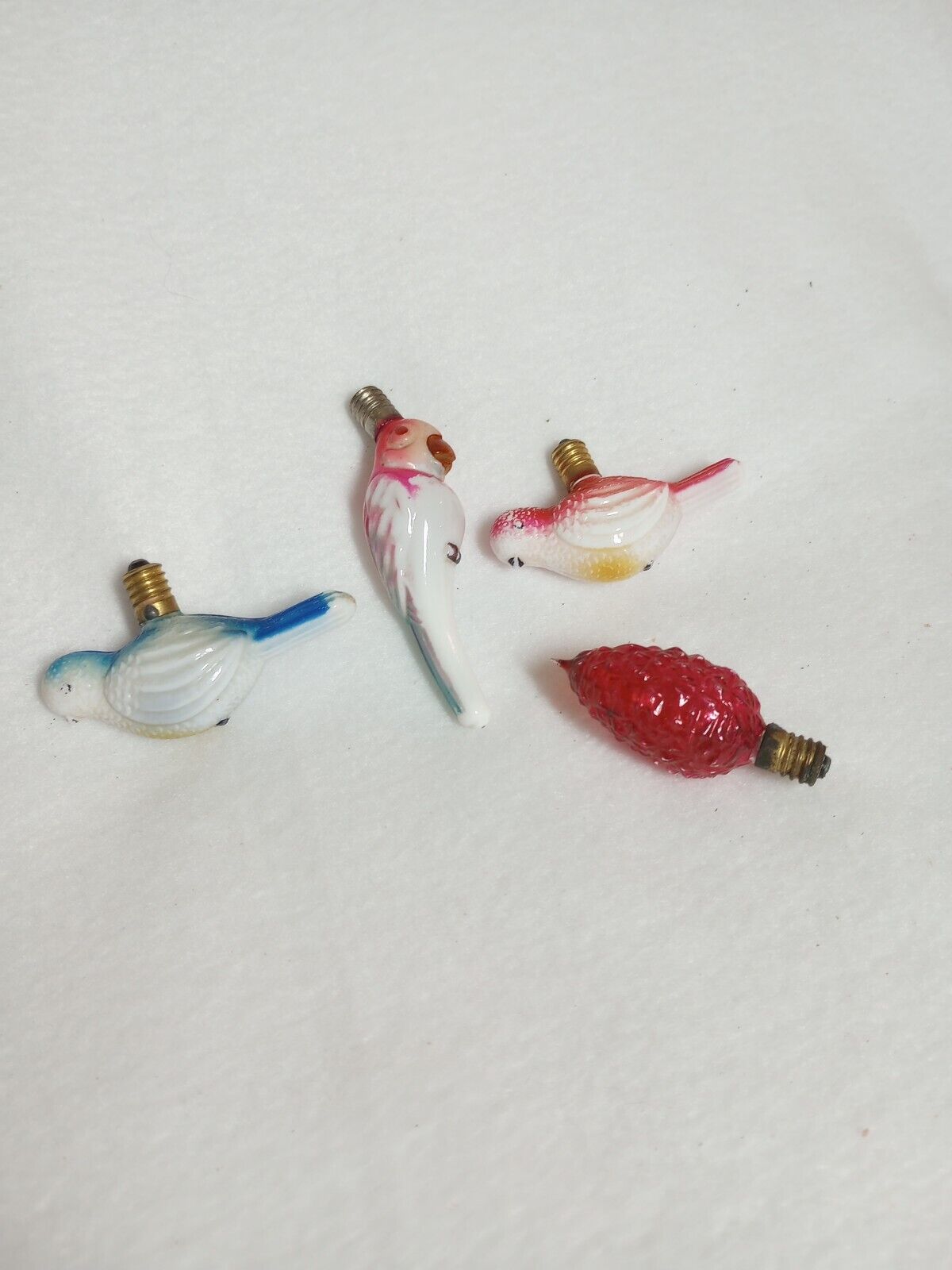 4 Vintage Milk Glass Christmas Figural Light Bulbs Made In Japan. Non Working