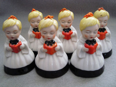 SIX FIGURAL CHOIR BOY BELL ORNAMENTS - JAPAN
