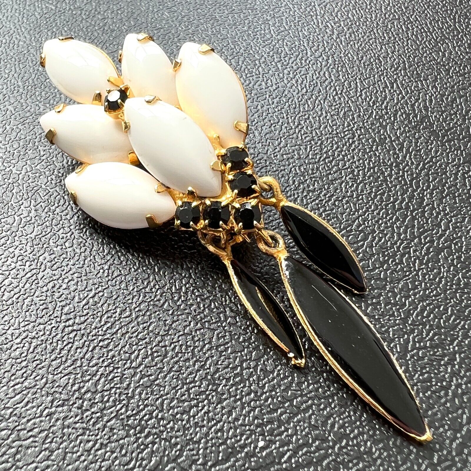 Title (ebay affiliate link): A236 DE JULIANA Vintage White Milk Glass Onyx Black Dangle Flower Brooch Pin