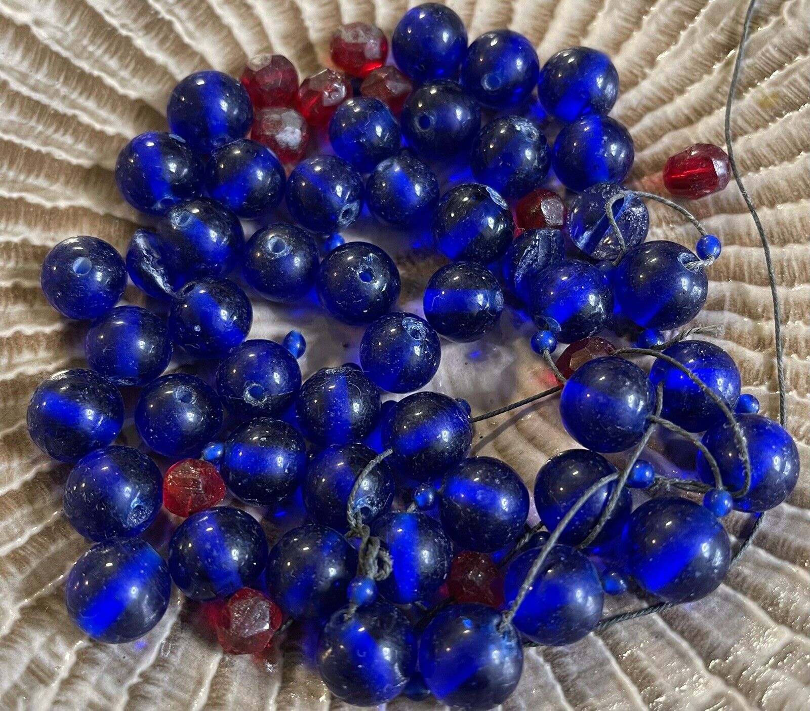 Broken String Of Antique Native American Trade Beads Cobalt Red Russian NR