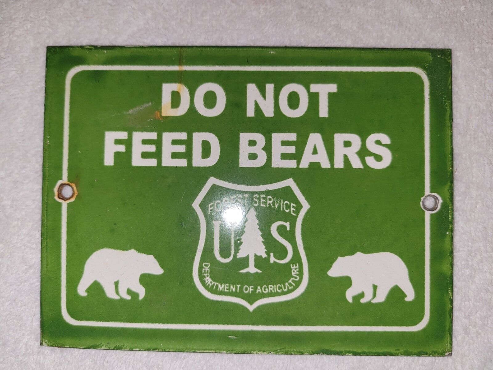 Title (ebay affiliate link): VINTAGE US NATIONAL FOREST PORCELAIN SIGN DO NOT FEED BEARS