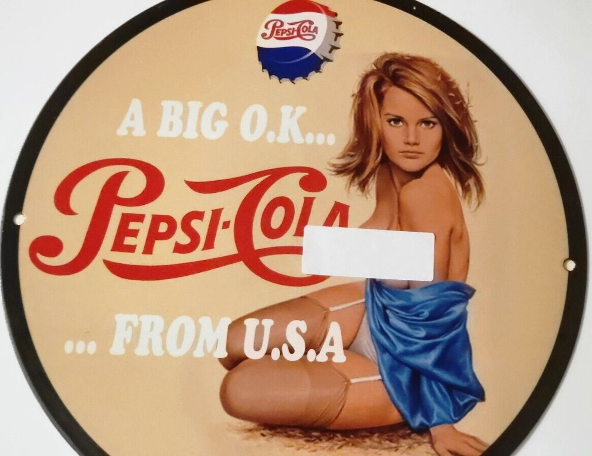 PEPSI COLA SODA POP BOTTLE MAN CAVE GARAGE HEAVY METAL VINTAGE PORCELAIN SIGN