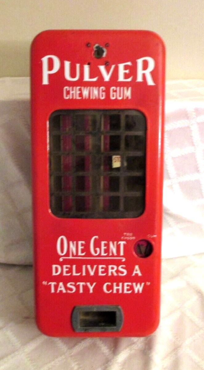 Title (ebay affiliate link): ANTIQUE PULVER CHEWING GUM PORCELAIN COIN VENDING MACHINESIGN YELLOW KIDORG