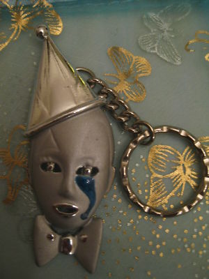 Title (ebay affiliate link): VTG HUGE Silvertone Enamel Clown Face Key Chain KeyRing