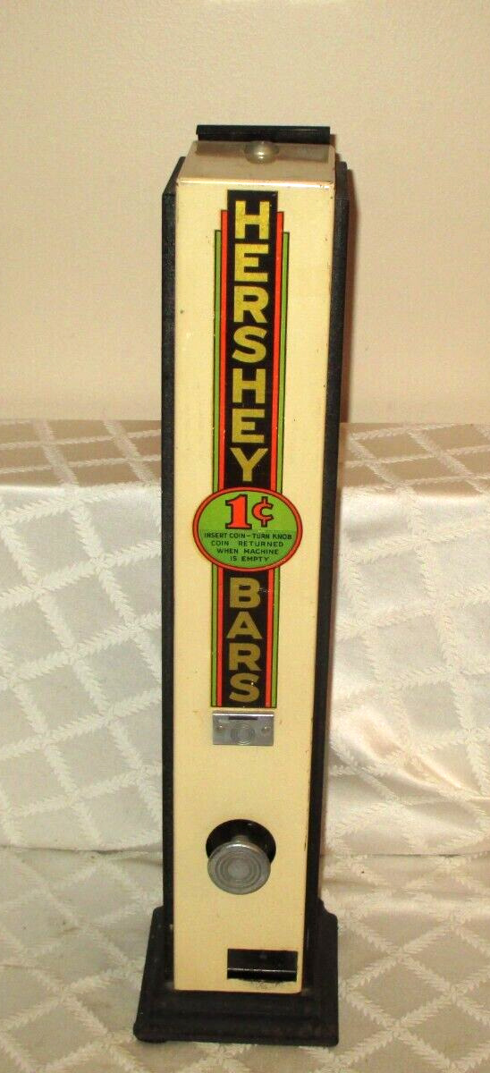 Title (ebay affiliate link): VINTAGE HERSHEY CANDY BAR1CENTKNOBVENDING STORE DISPLAY MACHINESIGNORG 2534