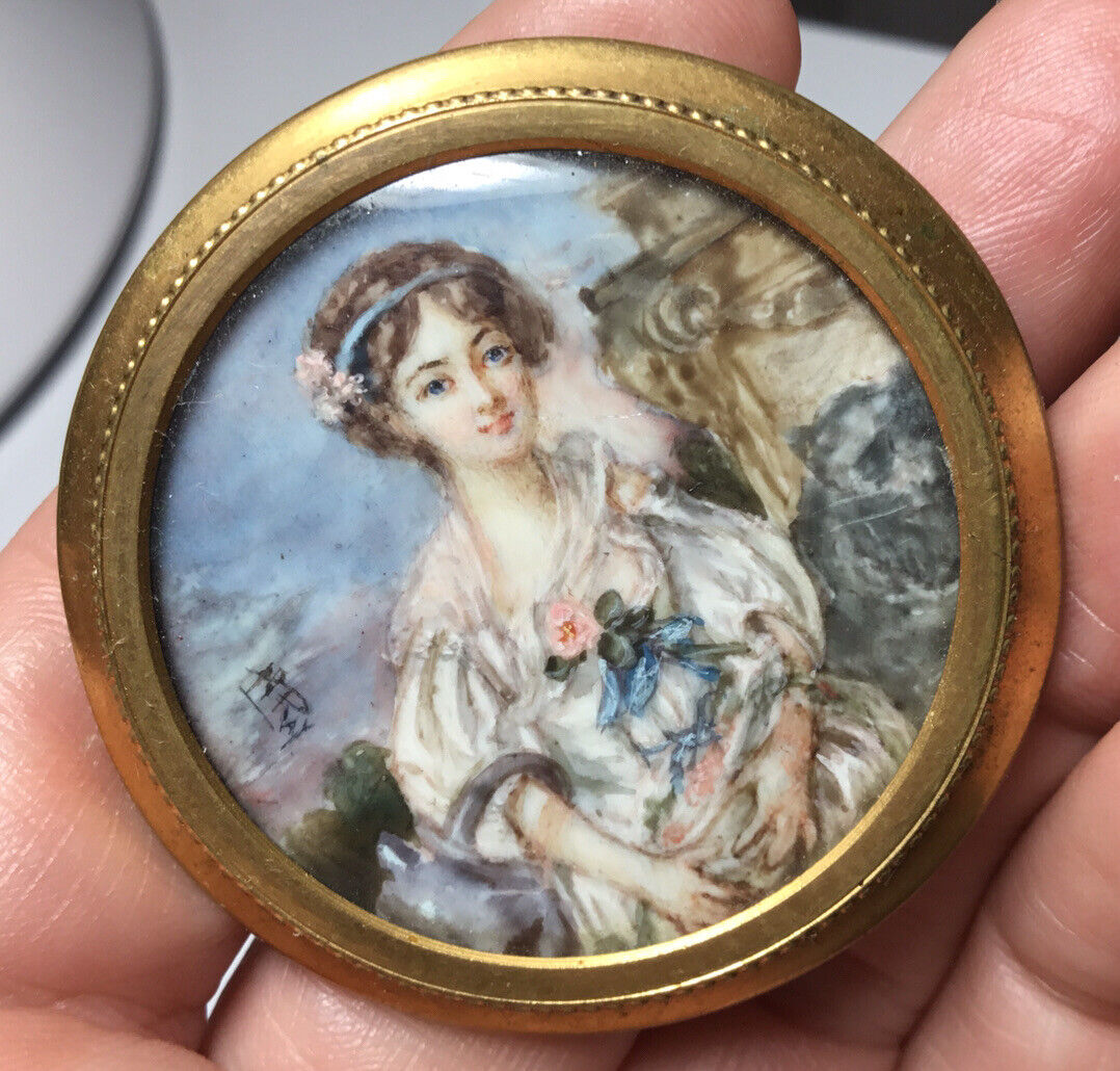 Title (ebay affiliate link): Antique Signed Georgian / Victorian Miniature Woman Portrait Brooch Hand Painted