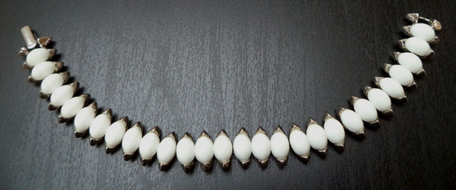 Title (ebay affiliate link): RARE STUNNING VINTAGE ESTATE SIGNED CROWN TRIFARI MILK GLASS 734 BRACELET G8684